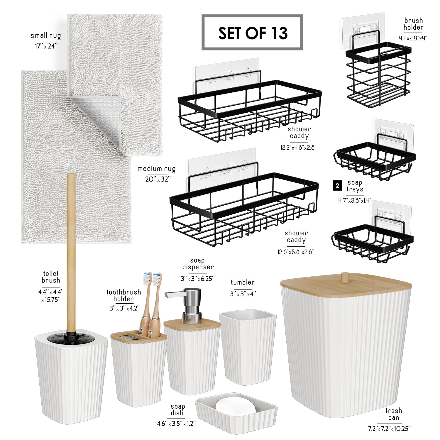 - Bathroom Accessories Set: Incorporate bathroom decor with our coordinated bathroom accessory set for bathroom organization. Our bathroom set with natural bamboo accents create a stylish haven.