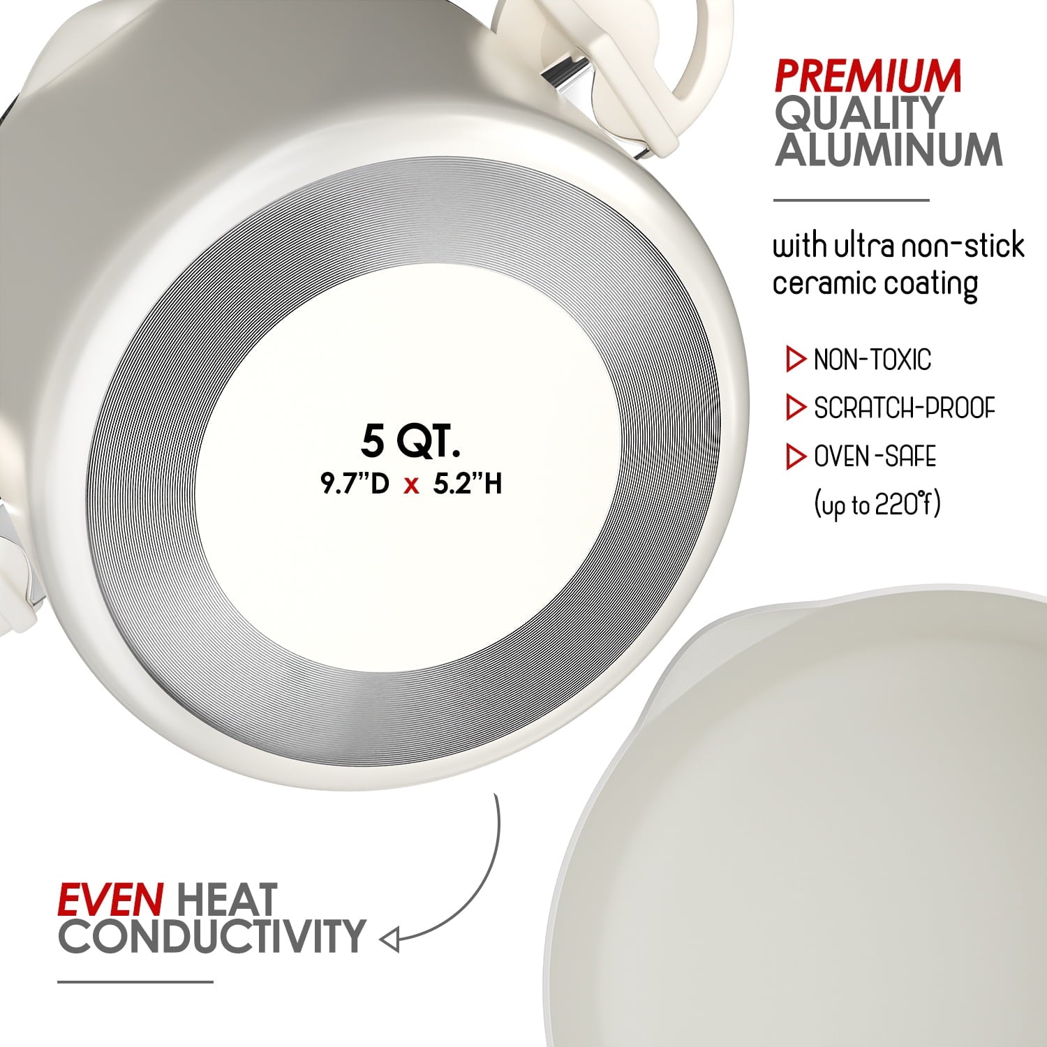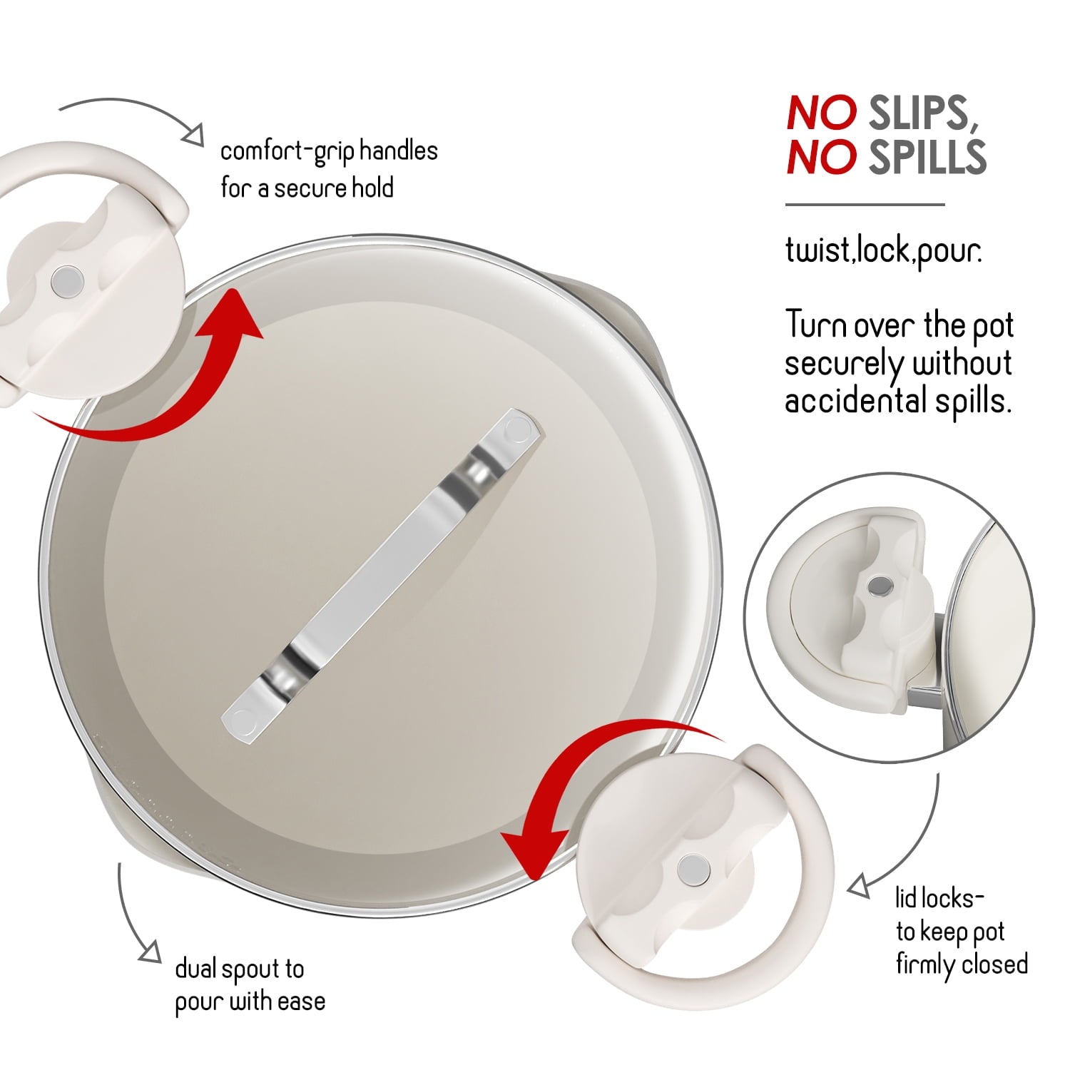 Virtu stock pot, Multipurpose Pasta Pot with Strainer Lid, Nonstick Ceramic Stainless Steel Pot, 5 Quart