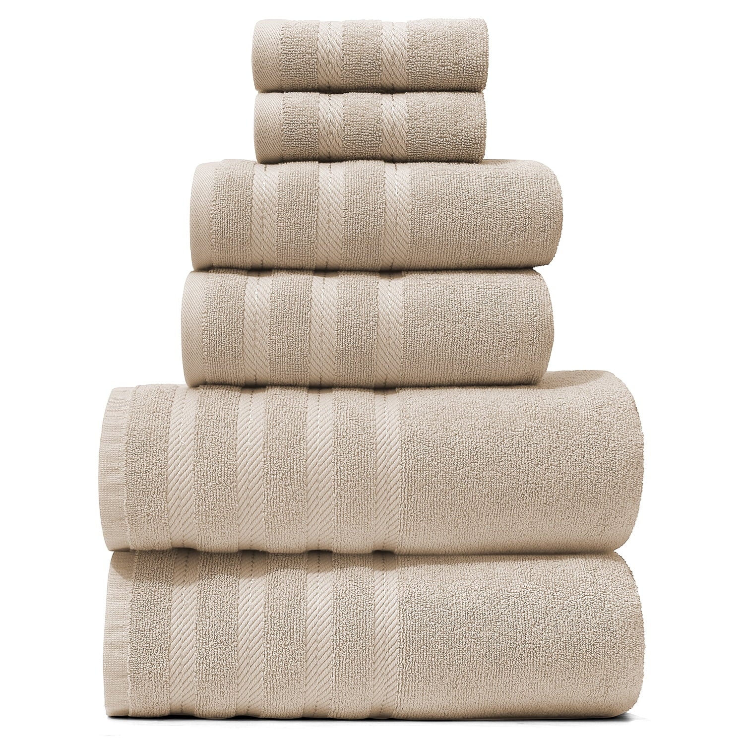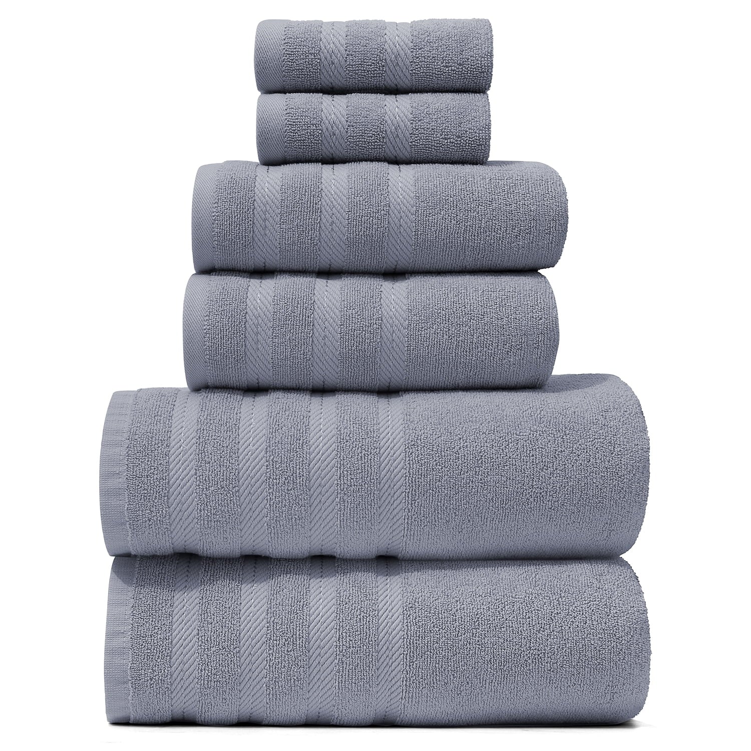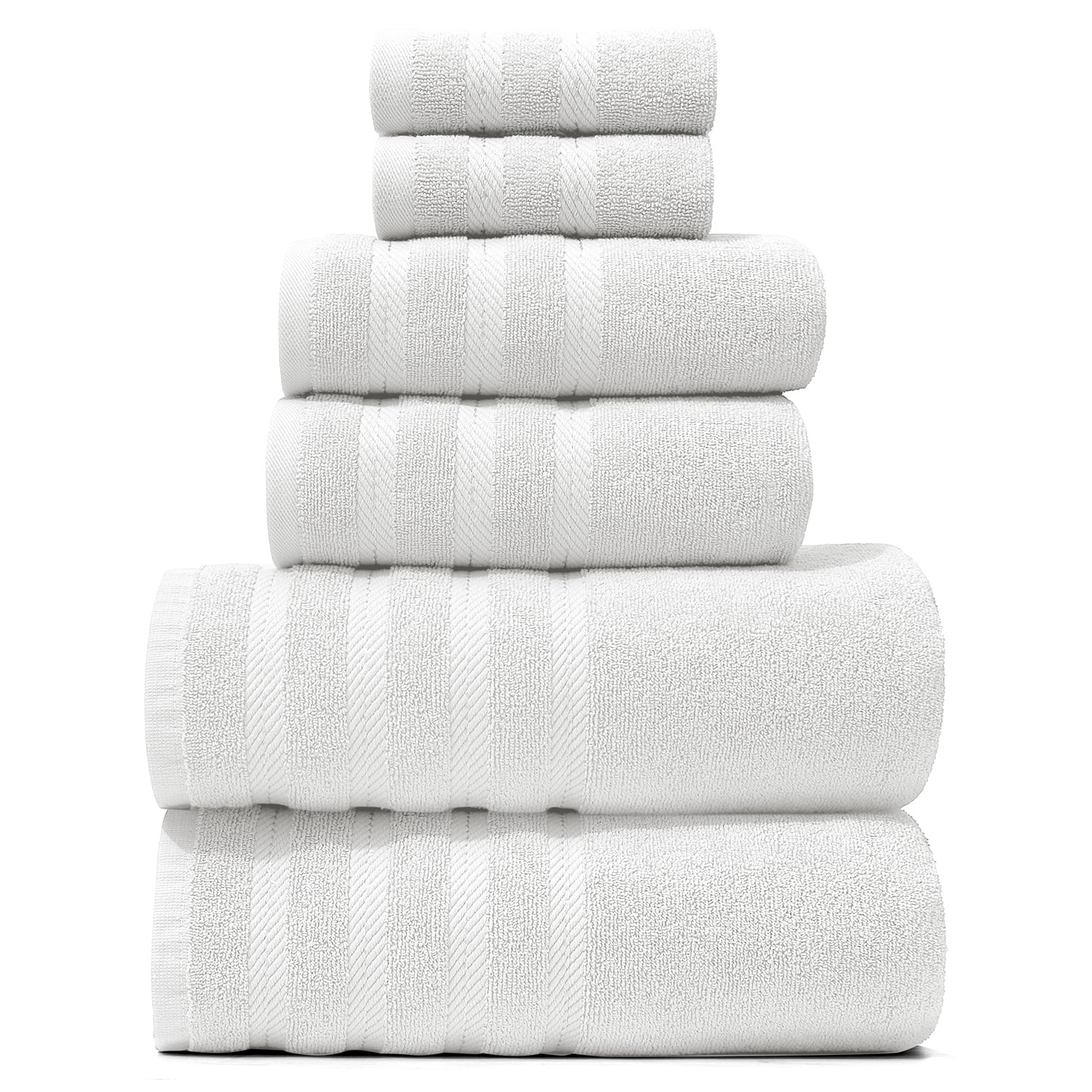 Experience everyday indulgence with the Virtu 6-Piece bath Towel Sets for bathroom, crafted from 100% ringspun cotton and weighing a plush 600 GSM for superior softness, absorbency, and durability. This premium bath towel set includes two bath towels, two hand towels, and two washcloths, offering the perfect blend of comfort and practicality for your bathroom. The rich 600 GSM construction of our bathroom towels delivers thick, ultra-absorbent towels that dry you off quickly while feeling gentle and luxurious on the skin. Designed for long-lasting use, Virtu towels bath maintain their fluffy texture and softness wash after wash, giving you a spa-like experience at home every day.